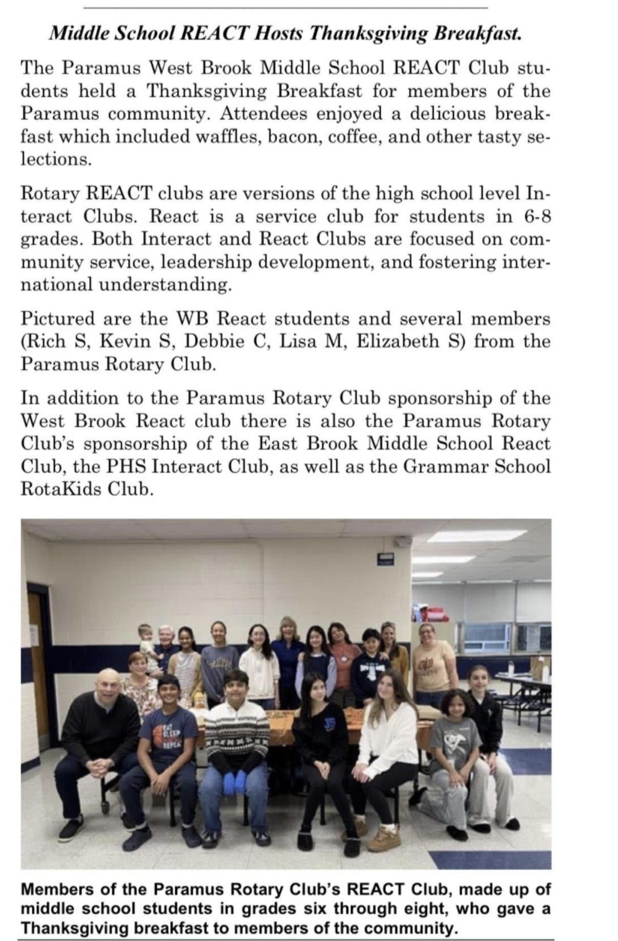 It was with great joy to support our Westbrook React club students, for their annule Thanksgiving breakfast.